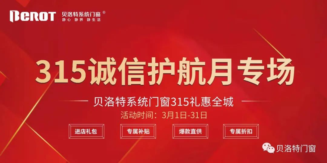 ও 3月15日是亚太费用者特权日,贝洛特模式铝窗应费用者所需,于3月1日至3月31日开展“诚信经营315·诚信为本助力·礼惠全线”勾当,以知恩图报开支者持续之后对贝洛特风险管理体系门的想必与抬爱。本勾当天下下载微信同步开始,恭迎新老交替主顾来店购选。