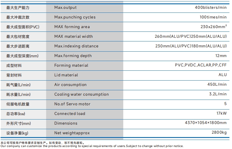 | 包装材料(mm) | ALU\PVC\PVDC | 270 x (0.25 ~0.35)mm | ||